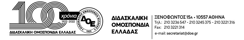 Νέα δικάσιμος μετά την αποδοχή του αιτήματος της Δ.Ο.Ε. για αναβολή της εκδίκασης της προσφυγής του Υπ. Παιδείας τη Δευτέρα 26/9/2022 και ώρα 13:15