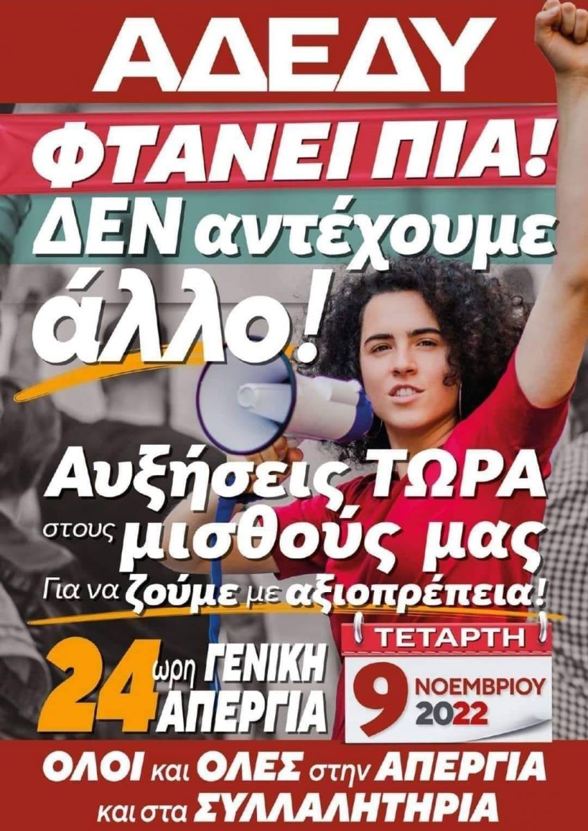 Ο ΣΕΠΕ Ρεθύμνου στηρίζει το κάλεσμα του Ν.Τ. ΑΔΕΔΥ Ρεθύμνου και καλεί όλα τα μέλη του, την Τετάρτη 9 Νοεμβρίου στις 10:00, στο εργατικό κέντρο μαζί με όλα τα σωματεία του ιδωτικού και του δημόσιου τομέα.