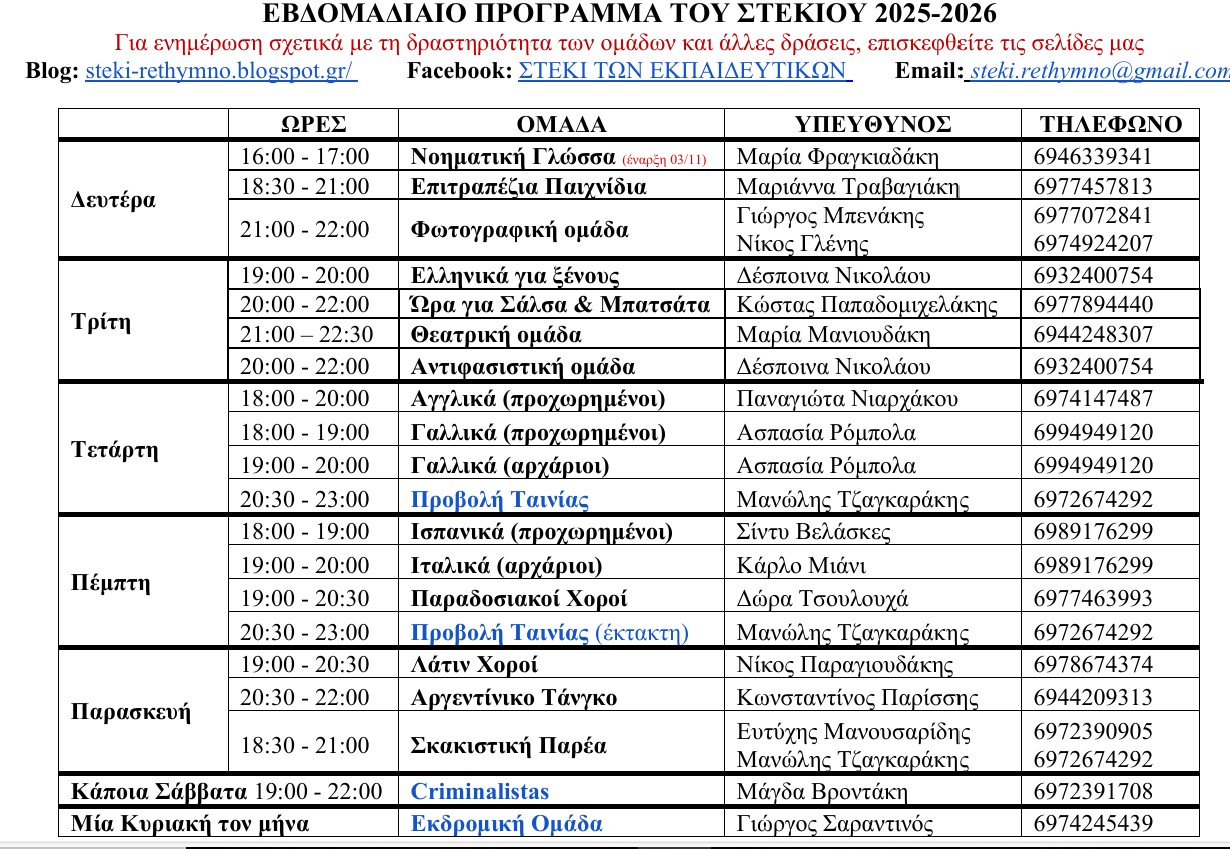 ΠΡΟΓΡΑΜΜΑ 2025-2026 → https://steki-rethymno.blogspot.com/p/blog-page_16.html