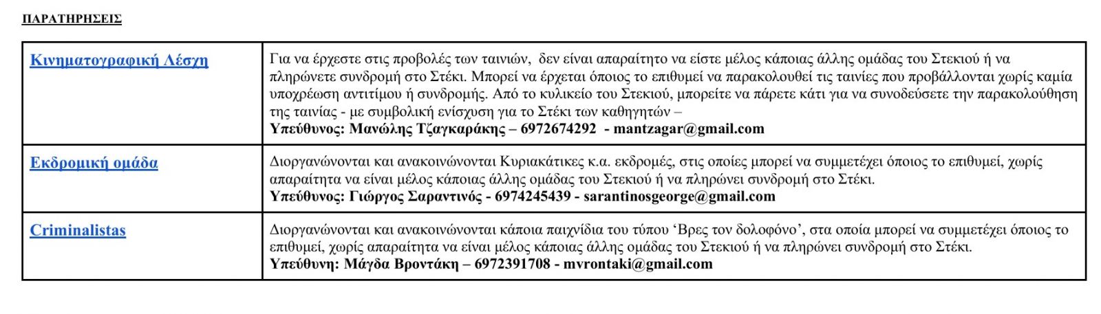 Σιγά-σιγά οι φίλοι του συγκεντρώνονται, οι ομάδες ξεκινούν, και φέτος το Στέκι εμπλουτίζεται με 18 συνολικά ομάδες δημιουργίας, επικοινωνίας και ψυχαγωγίας!