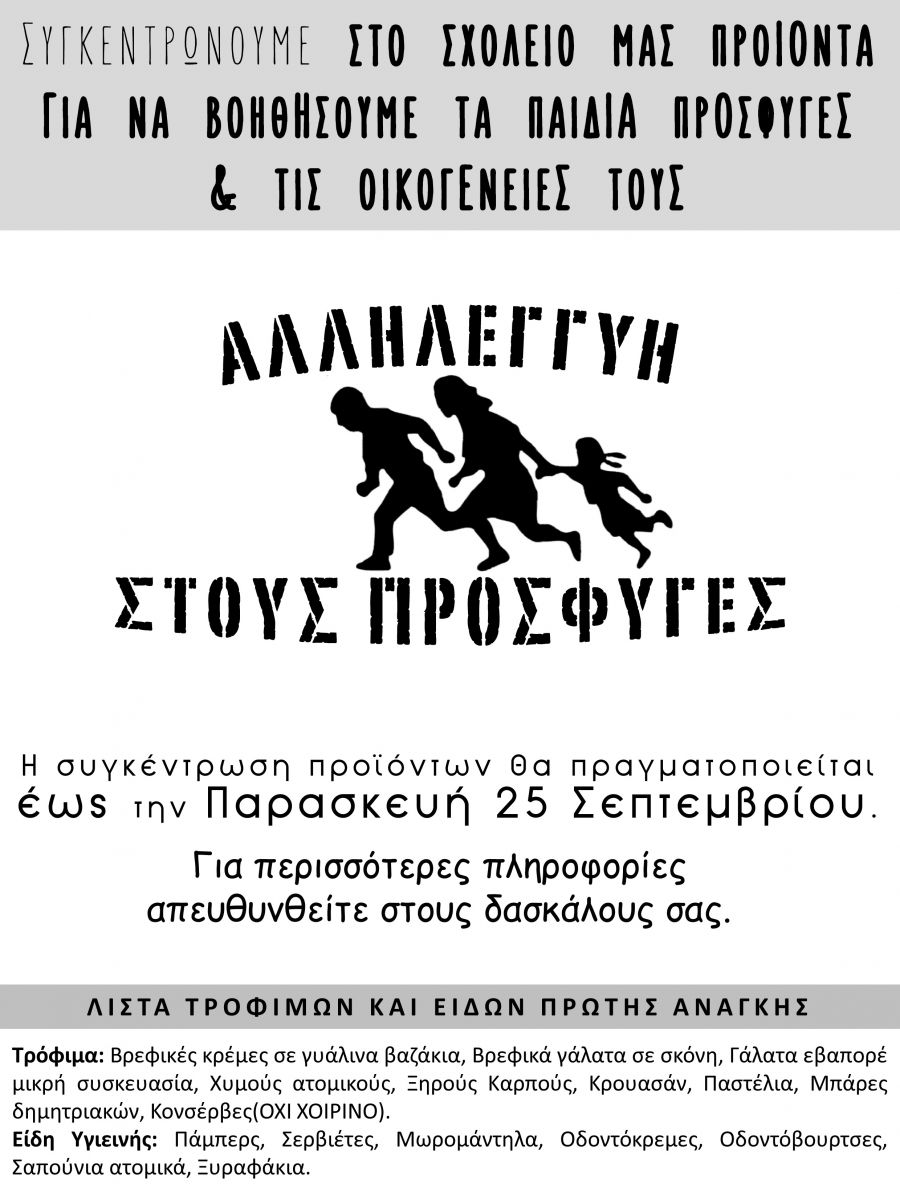 Καμπάνια συγκέντρωσης τροφίμων και ειδών υγιεινής για τους πρόσφυγες